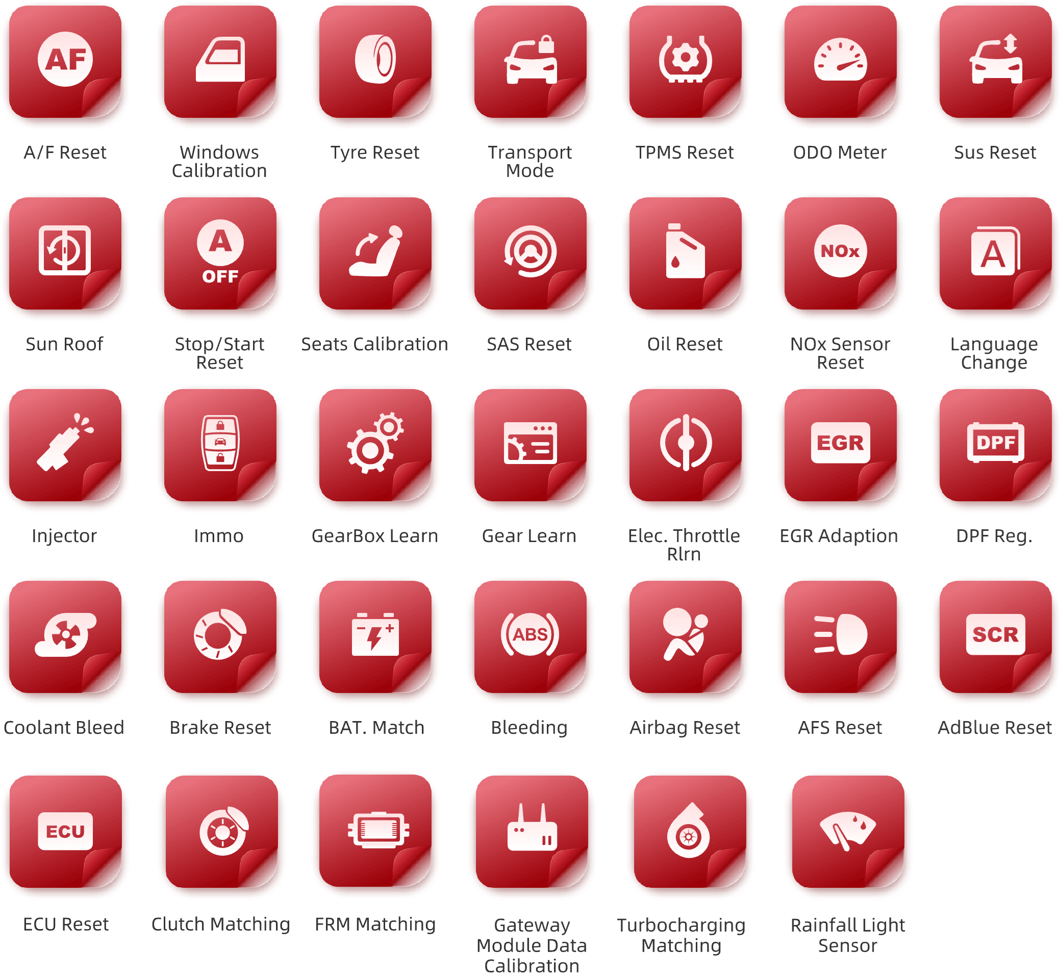 Европа: ASTONMARTIN, AUDI, BMW, CITROEN, FERRARI, FIAT, JAGUAR, LANDROVER, MASERATI, MERCEDES, OPEL, PEUGEOT, PORSCHE, RENAULT, SAAB, SEAT, SKODA, SMART, SPRINTER, VOLVO, VW