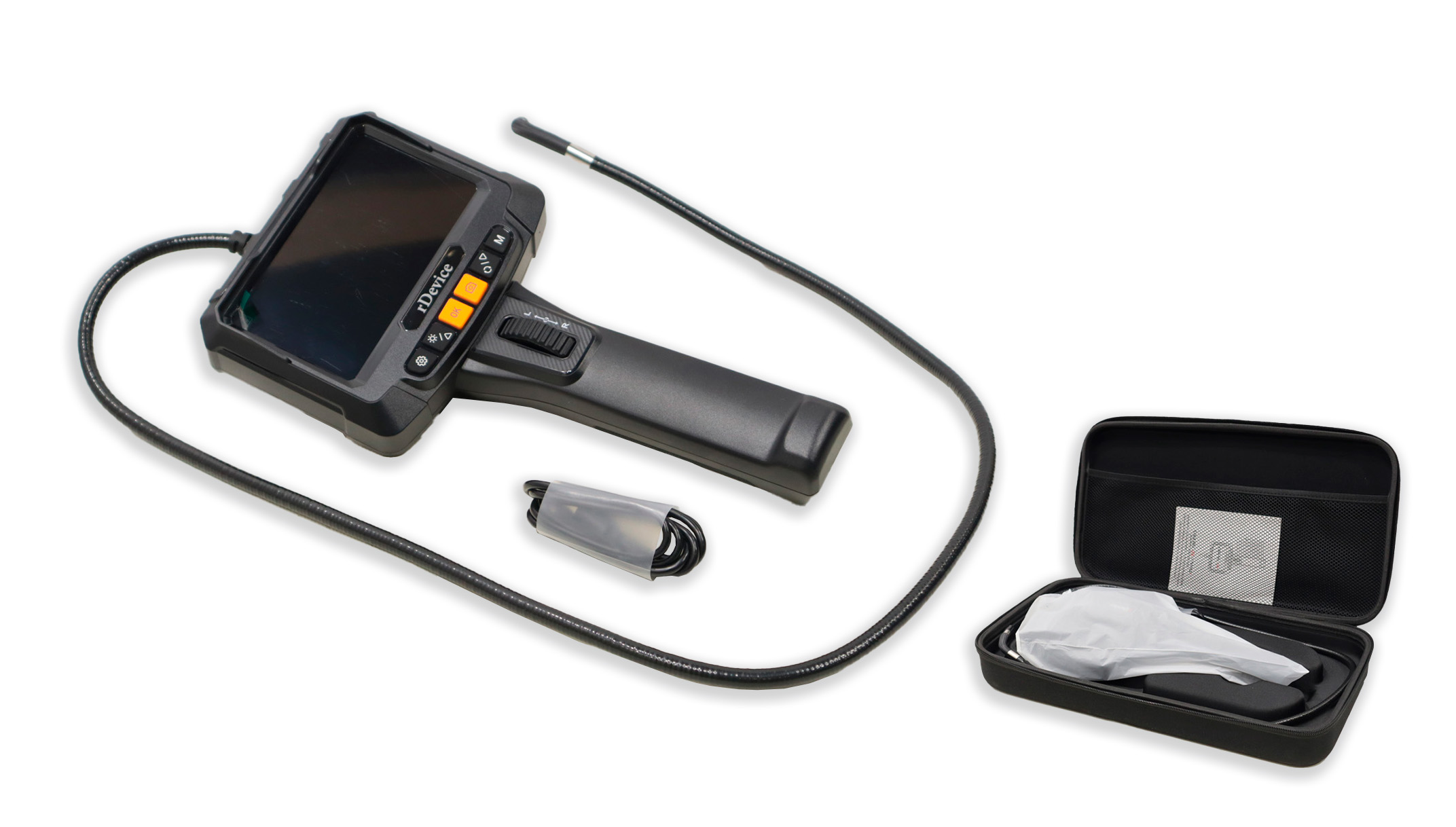 Полный механический контроль (2-сторонний поворот на 180°): Точное управление углом обзора камеры с помощью эргономичного колесика. Осматривайте объекты со всех сторон без лишних манипуляций зондом.