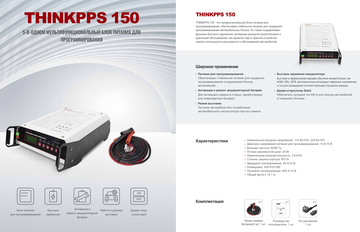 Забудьте о простых "зарядниках". ThinkPPS 150 — это профессиональный многофункциональный комбайн для комплексного обслуживания автомобильных аккумуляторов и работы с бортовой электроникой.